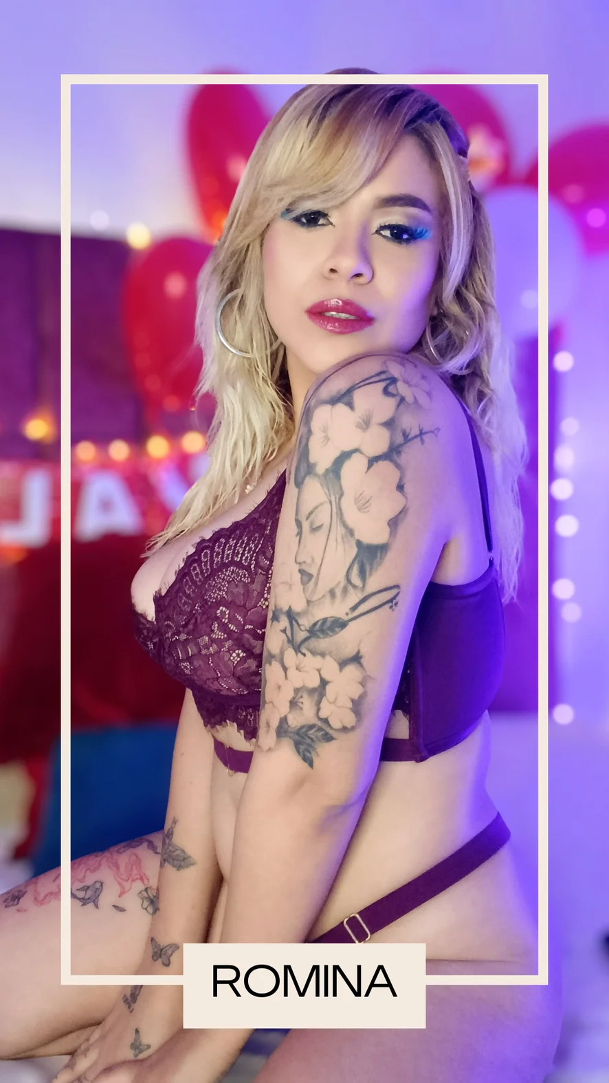 Hi, I'm Romina, I'm a blonde Latina, with a sensual and elegant personality that knows how to captivate and enjoy every moment, I know how to make every encounter unique, fun and full of glamour. I love meeting new people, attending to my followers and providing them with a space where they feel special and relaxed.